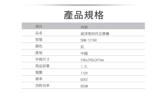 首頁 / 超淨 / 第四代養生豆漿機SBM-1216R (停售)