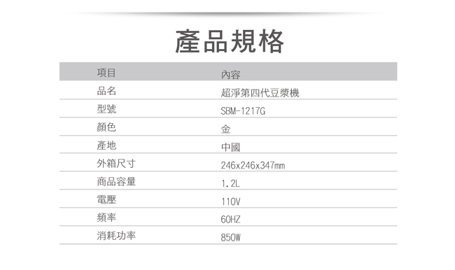 首頁 / 超淨 / 第四代養生豆漿機SBM-1217G (停售)